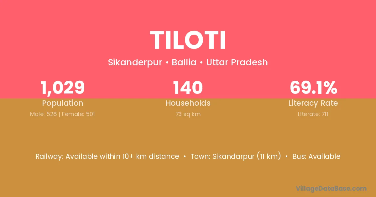 Tiloti village has a total population of 1,029 people, of which 528 are males and 501 are females.