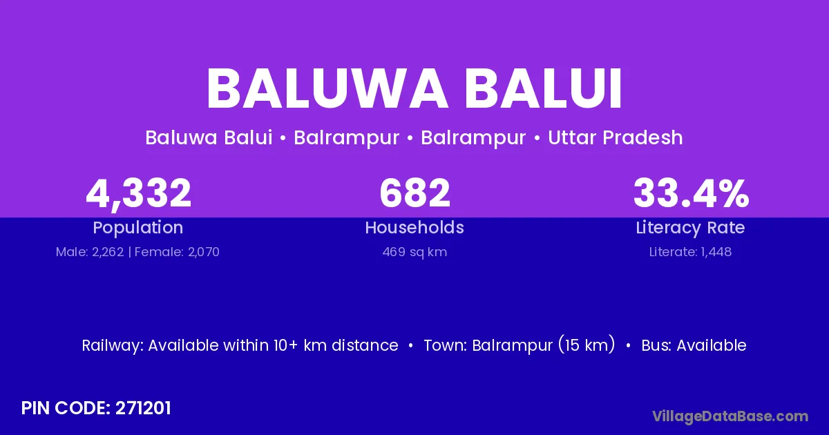 Balrampur (15 km) is the nearest town to Baluwa Balui village for major economic activities and is located approximately 15 km away.