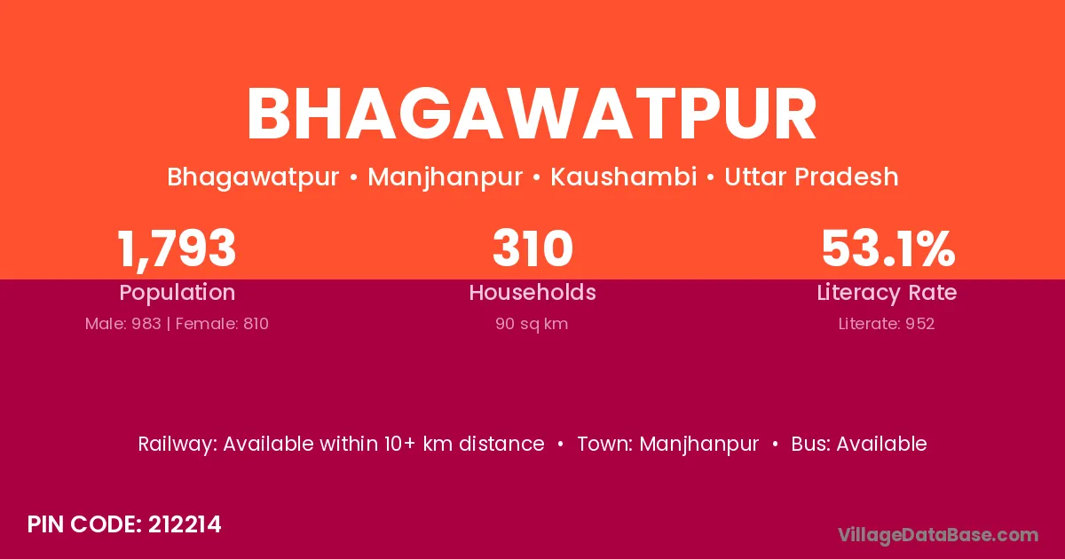 The literacy rate of Bhagawatpur village is 37.70%. Male literacy stands at 47.15% and female literacy at 26.81%.
