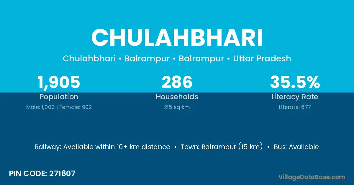 Balrampur (15 km) is the nearest town to Chulahbhari village for major economic activities and is located approximately 15 km away.