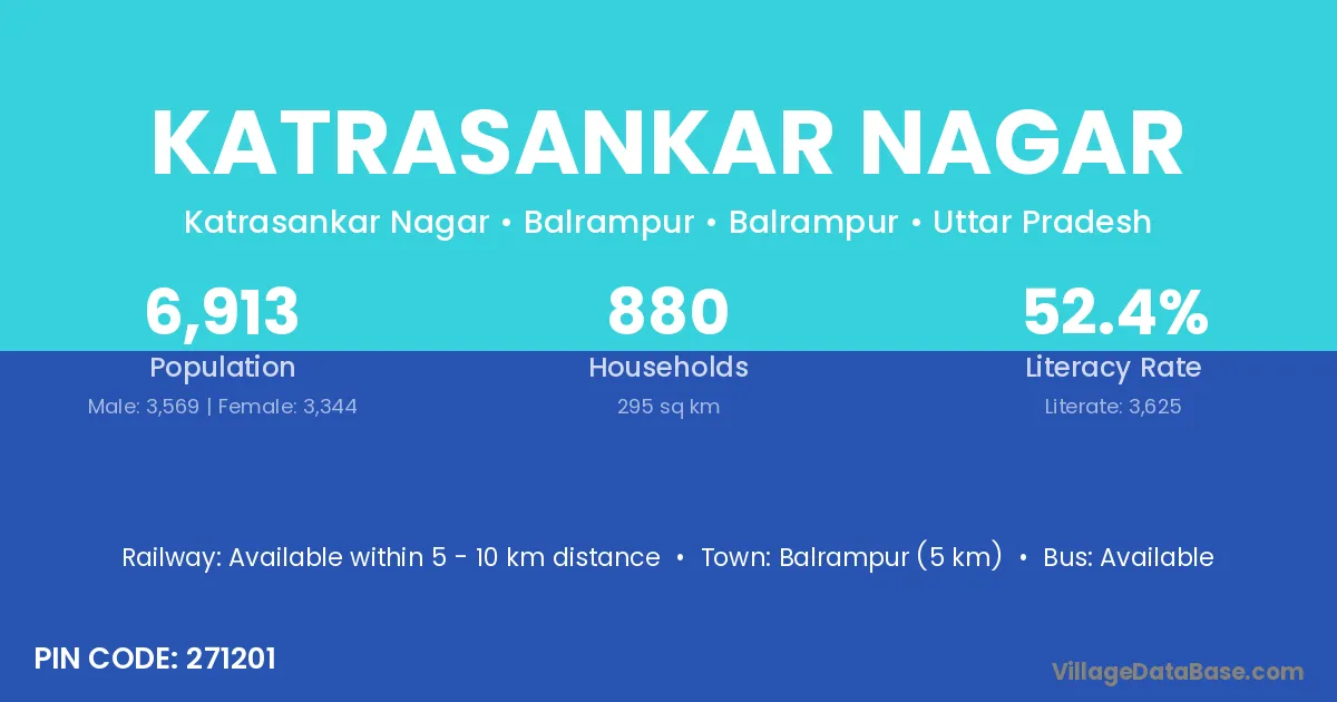 Balrampur (5 km) is the nearest town to Katrasankar Nagar village for major economic activities and is located approximately 5 km away.
