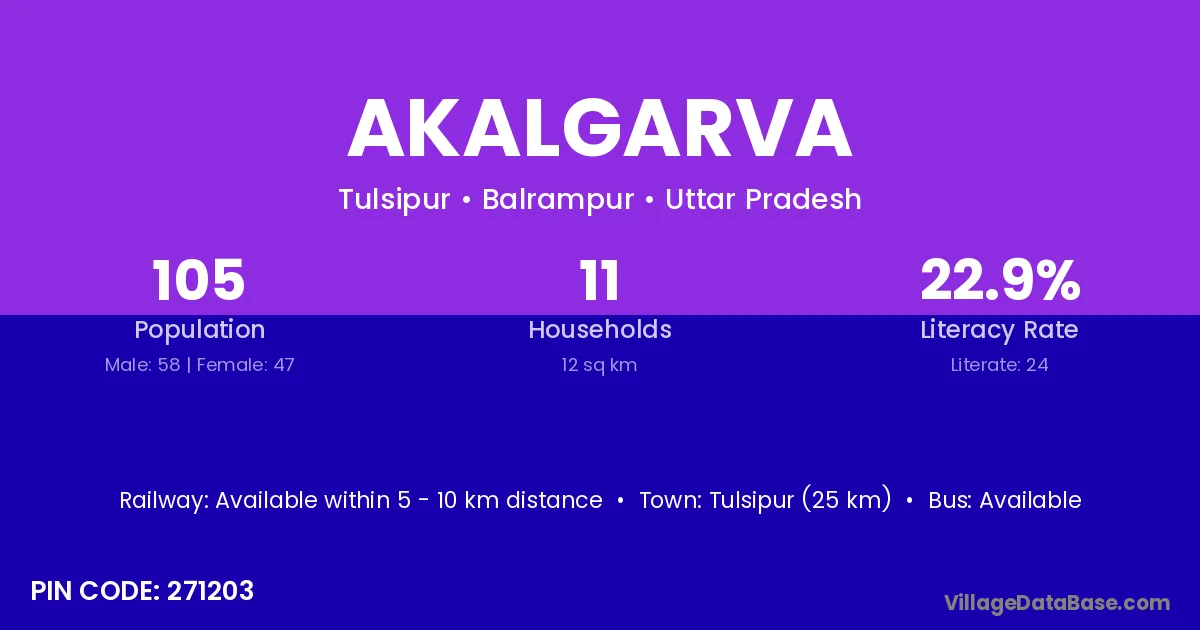 Tulsipur (25 km) is the nearest town to Akalgarva village for major economic activities and is located approximately 25 km away.