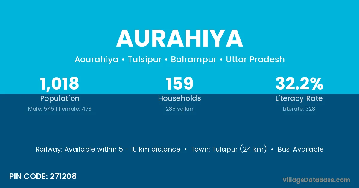 Tulsipur (24 km) is the nearest town to Aurahiya village for major economic activities and is located approximately 24 km away.