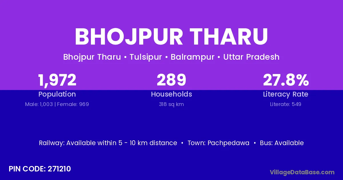 According to Census 2011 information, the village code of Bhojpur Tharu village is 271210.