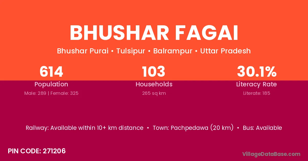 According to Census 2011 information, the village code of Bhushar Fagai village is 271206.