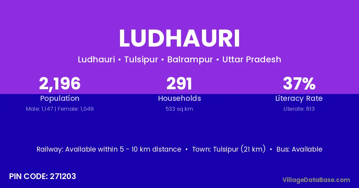 Tulsipur (21 km) is the nearest town to Ludhauri village for major economic activities and is located approximately 21 km away.