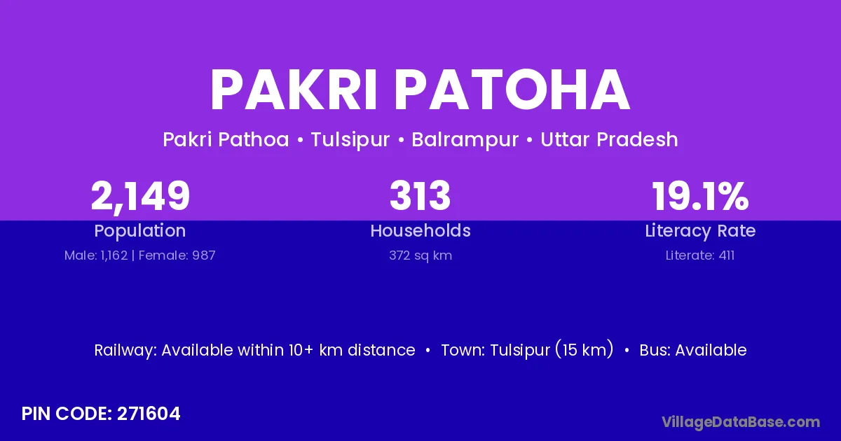 Tulsipur (15 km) is the nearest town to Pakri Patoha village for major economic activities and is located approximately 15 km away.