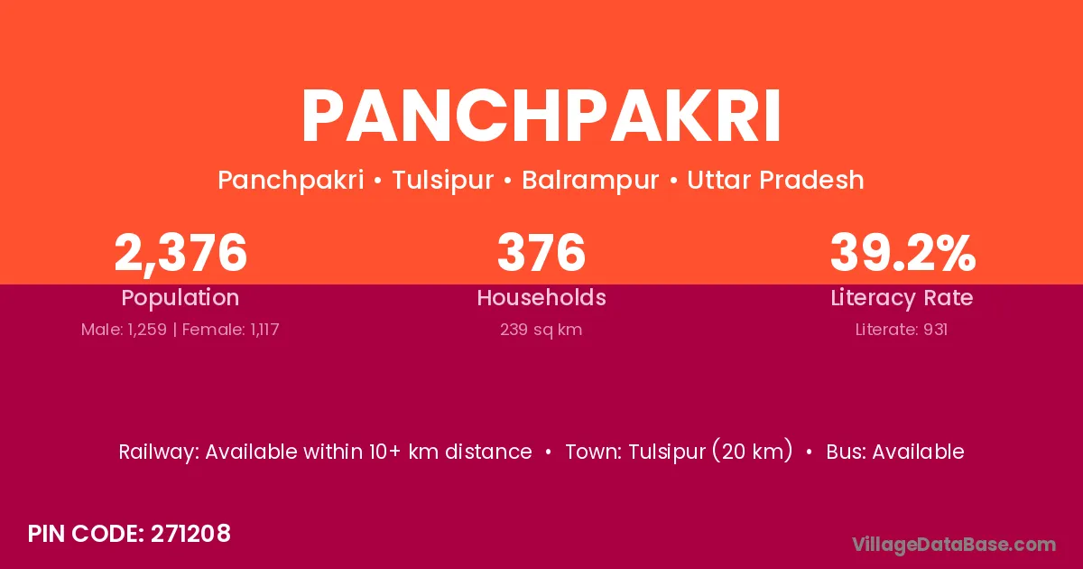 Tulsipur (20 km) is the nearest town to Panchpakri village for major economic activities and is located approximately 20 km away.