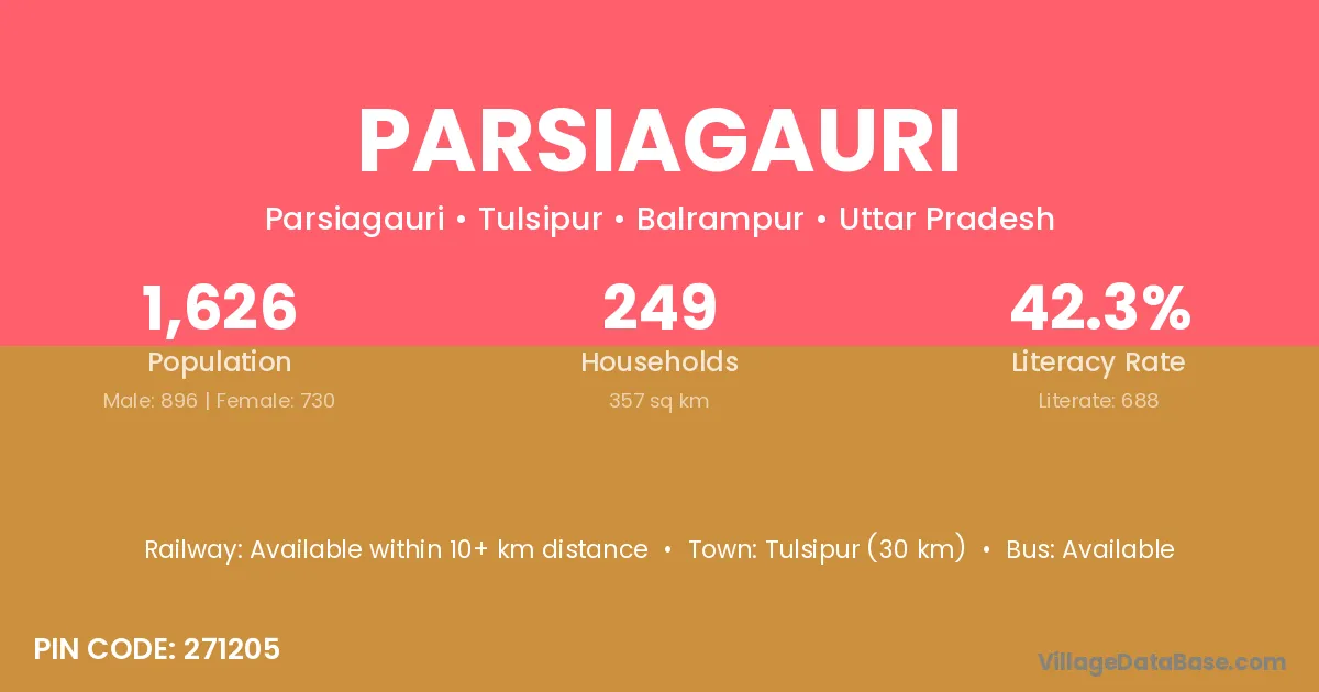 Tulsipur (30 km) is the nearest town to Parsiagauri village for major economic activities and is located approximately 30 km away.