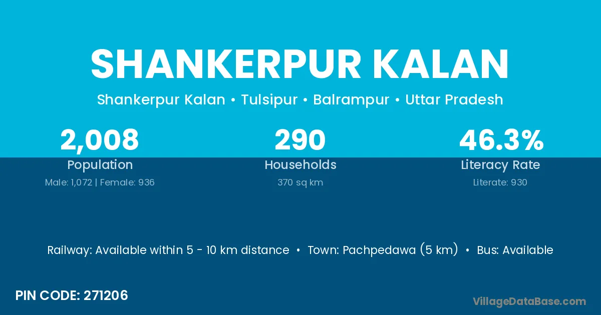 Pachpedawa (5 km) is the nearest town to Shankerpur Kalan village for major economic activities and is located approximately 5 km away.