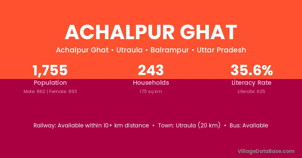 Utraula (20 km) is the nearest town to Achalpur Ghat village for major economic activities and is located approximately 20 km away.