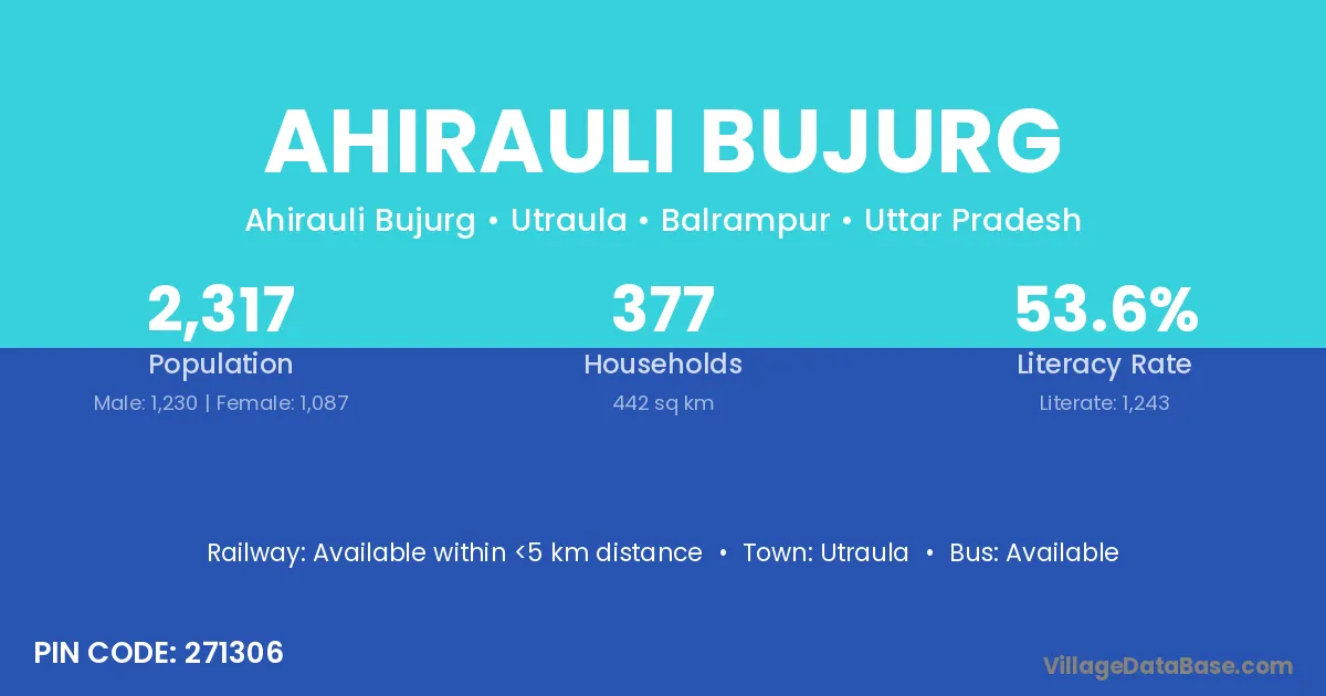 Utraula is the nearest town to Ahirauli Bujurg village for major economic activities
