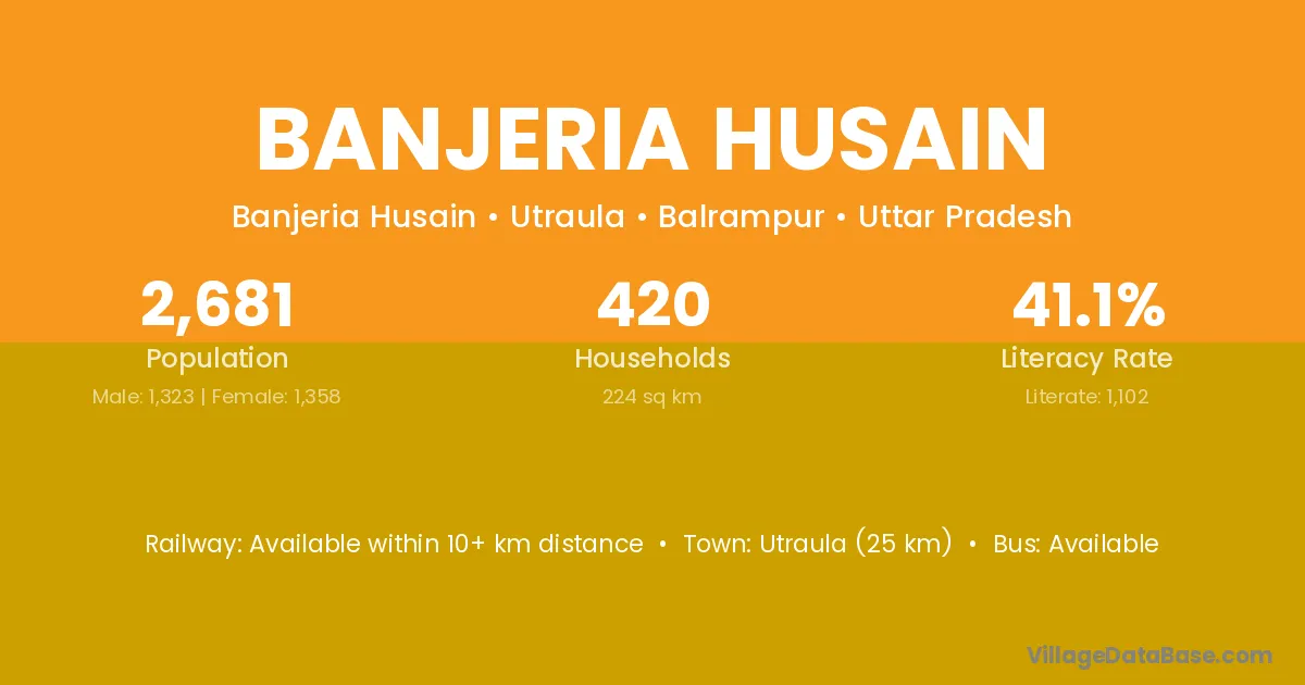 Utraula (25 km) is the nearest town to Banjeria Husain village for major economic activities and is located approximately 25 km away.