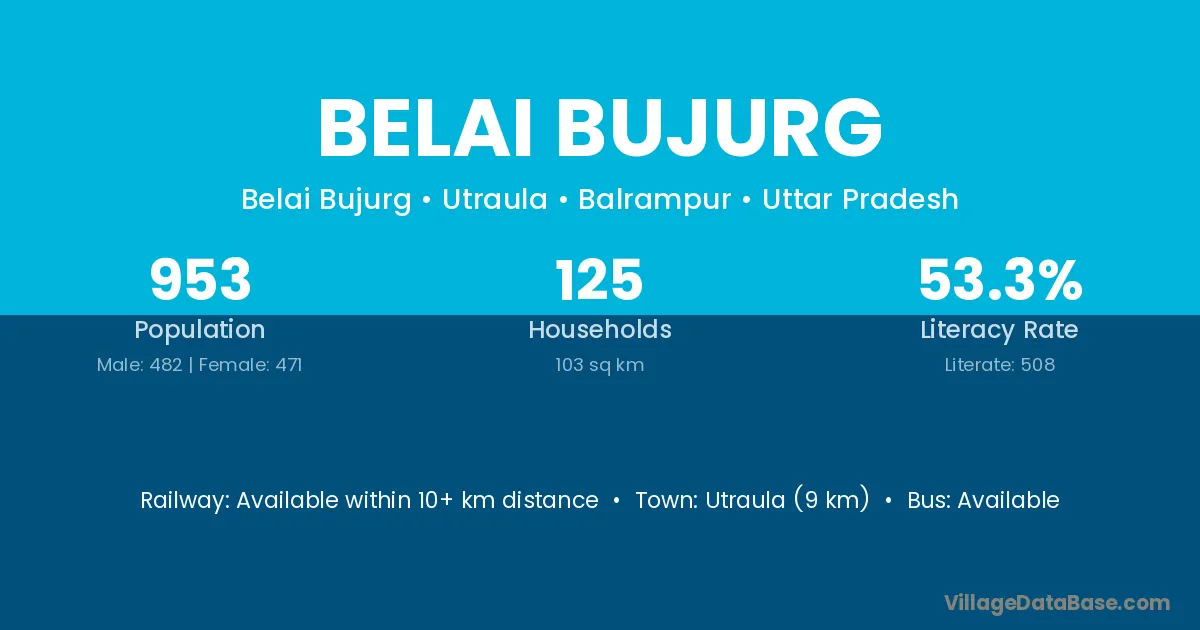 Utraula (9 km) is the nearest town to Belai Bujurg village for major economic activities and is located approximately 9 km away.
