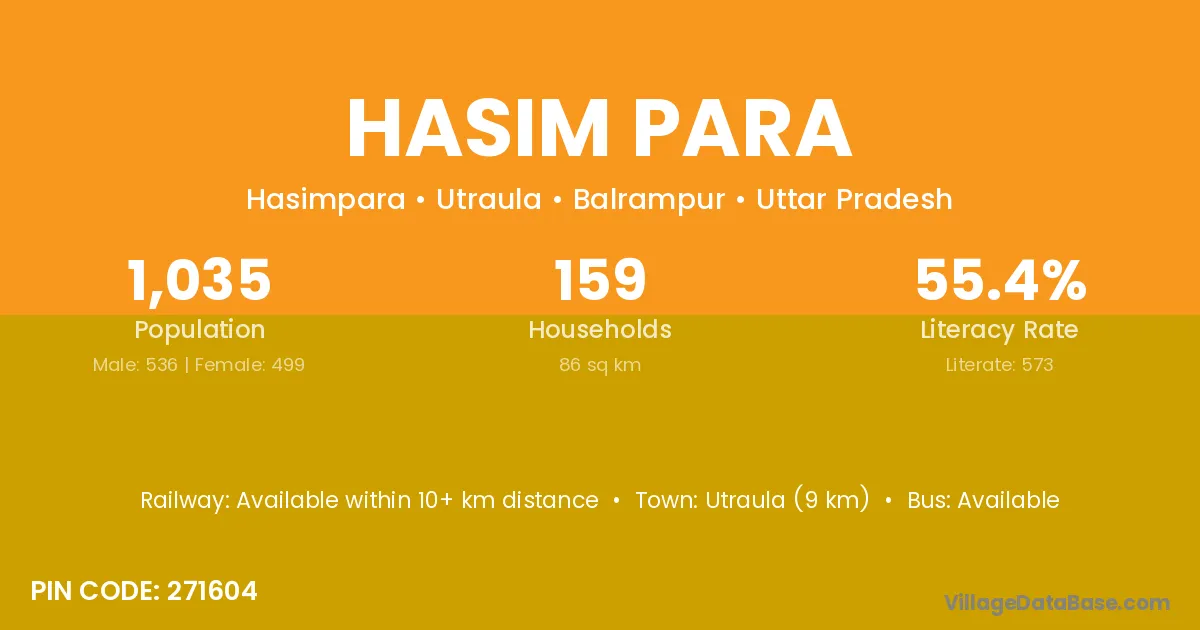 Utraula (9 km) is the nearest town to Hasim Para village for major economic activities and is located approximately 9 km away.
