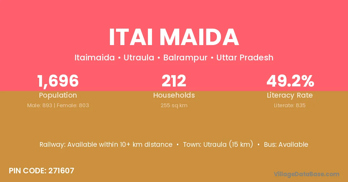 Utraula (15 km) is the nearest town to Itai Maida village for major economic activities and is located approximately 15 km away.