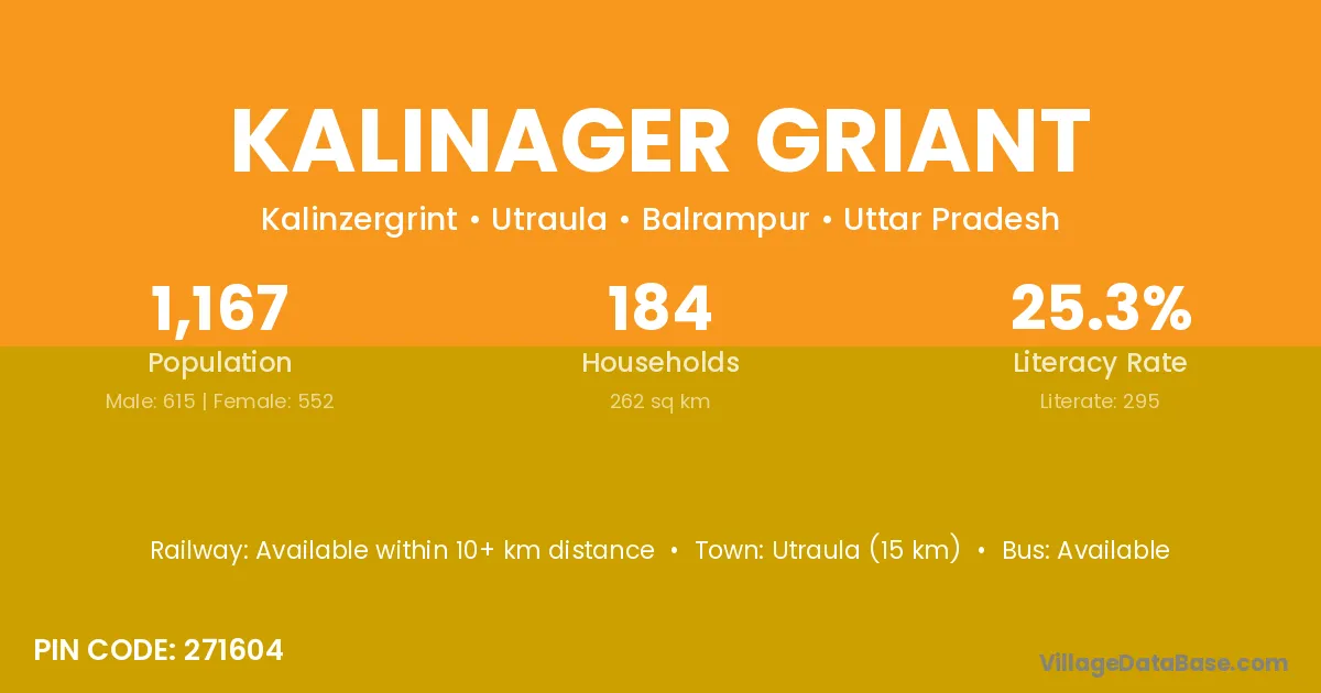 Utraula (15 km) is the nearest town to Kalinager Griant village for major economic activities and is located approximately 15 km away.