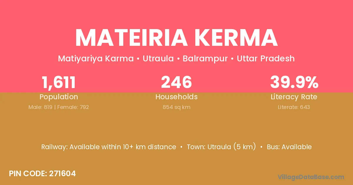Utraula (5 km) is the nearest town to Mateiria Kerma village for major economic activities and is located approximately 5 km away.