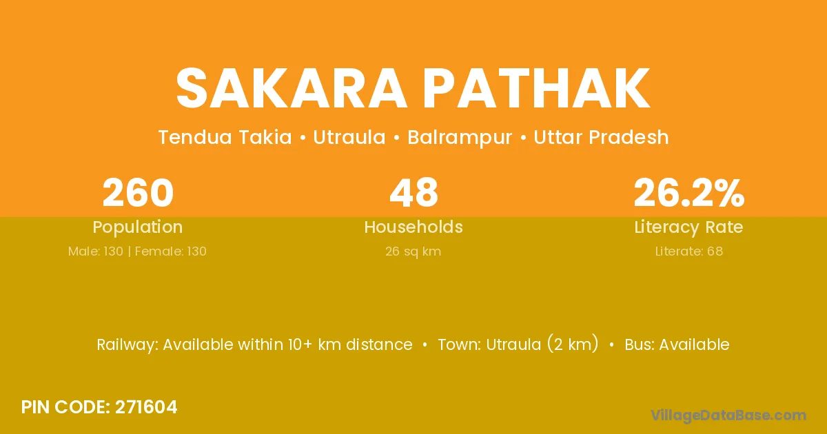 Utraula (2 km) is the nearest town to Sakara Pathak village for major economic activities and is located approximately 2 km away.