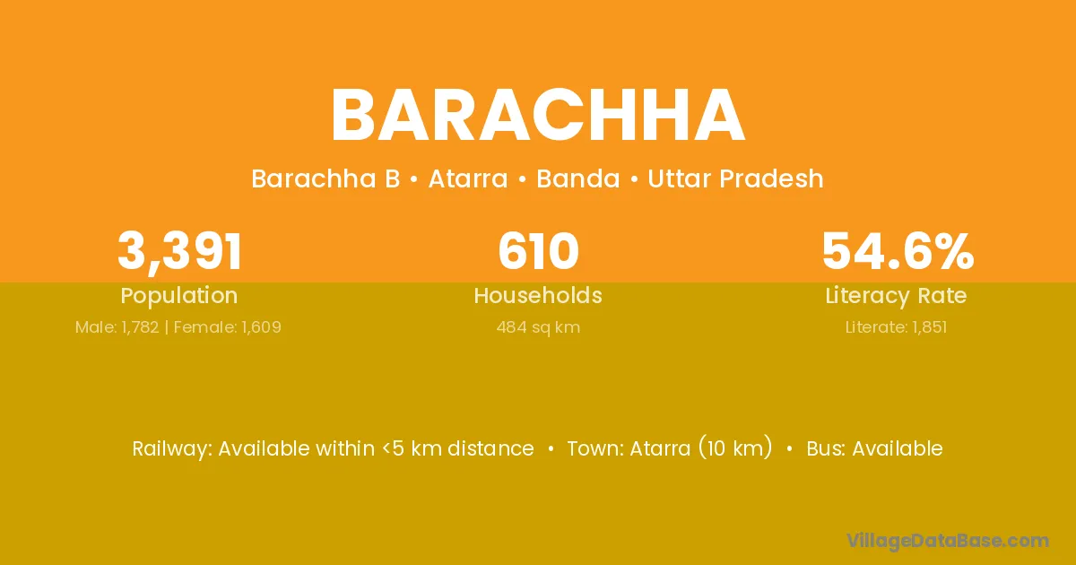 Atarra (10 km) is the nearest town to Barachha village for major economic activities and is located approximately 10 km away.