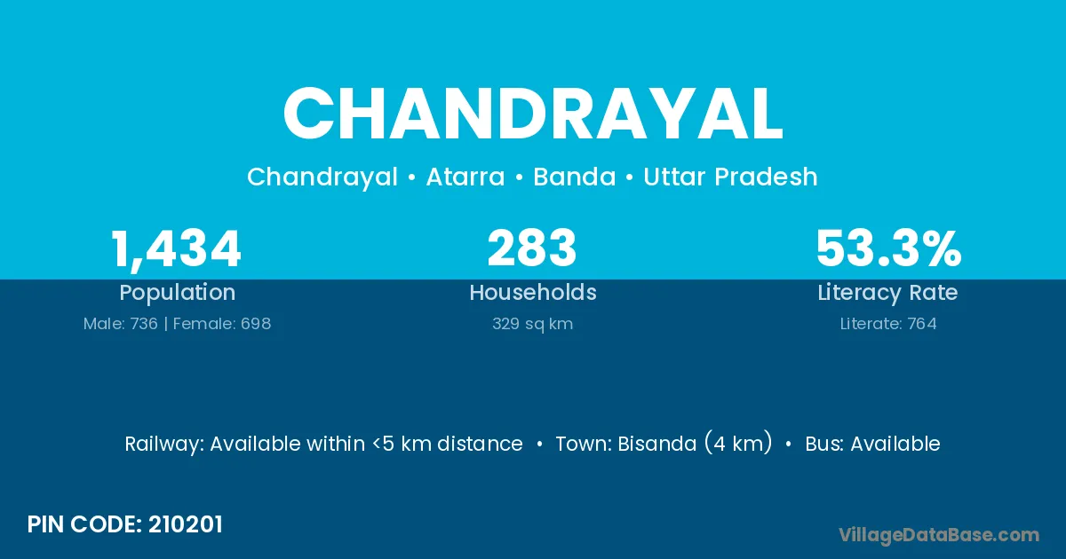 Bisanda (4 km) is the nearest town to Chandrayal village for major economic activities and is located approximately 4 km away.