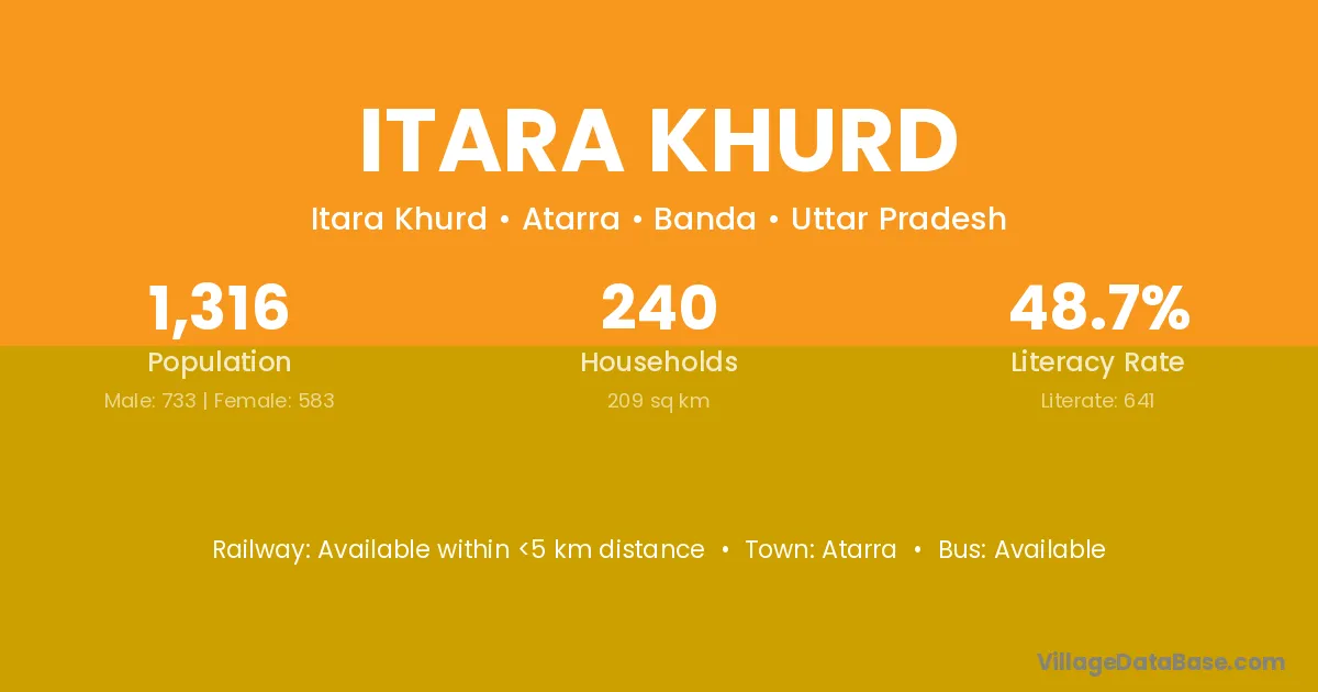 Atarra is the nearest town to Itara Khurd village for major economic activities
