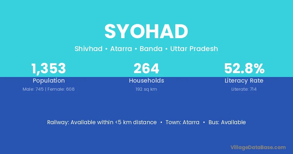 Syohad village has a total population of 1,353 people, of which 745 are males and 608 are females.