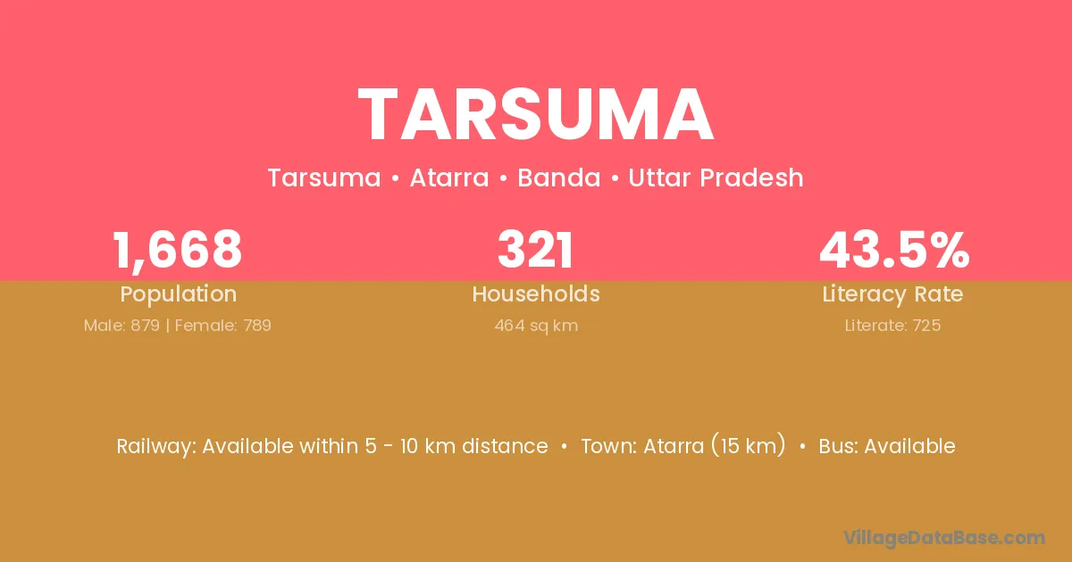 Atarra (15 km) is the nearest town to Tarsuma village for major economic activities and is located approximately 15 km away.