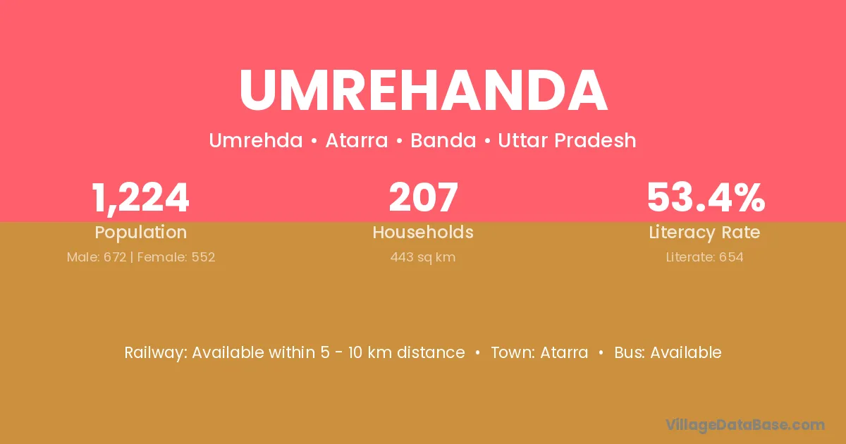 Umrehanda village has a total population of 1,224 people, of which 672 are males and 552 are females.