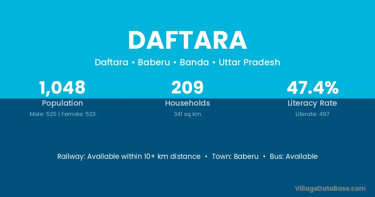 Daftara village has a total population of 1,048 people, of which 525 are males and 523 are females.