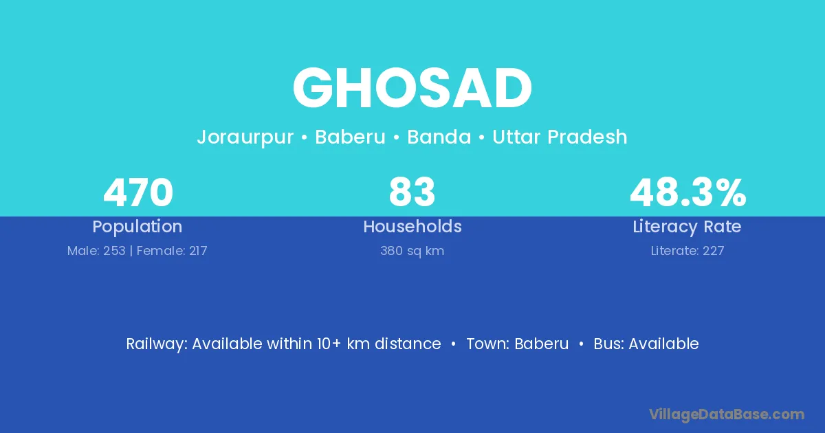 Baberu is the nearest town to Ghosad village for major economic activities