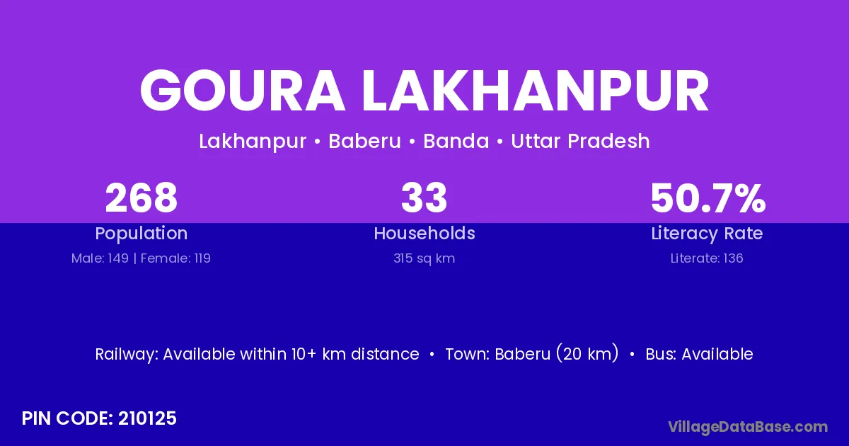 Baberu (20 km) is the nearest town to Goura Lakhanpur village for major economic activities and is located approximately 20 km away.