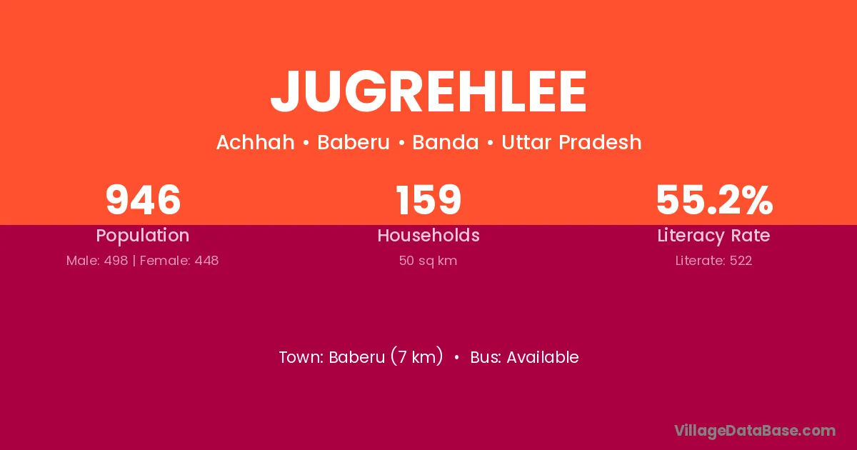 Jugrehlee village is located in the Baberu Tehsil of the Banda district in Uttar Pradesh .