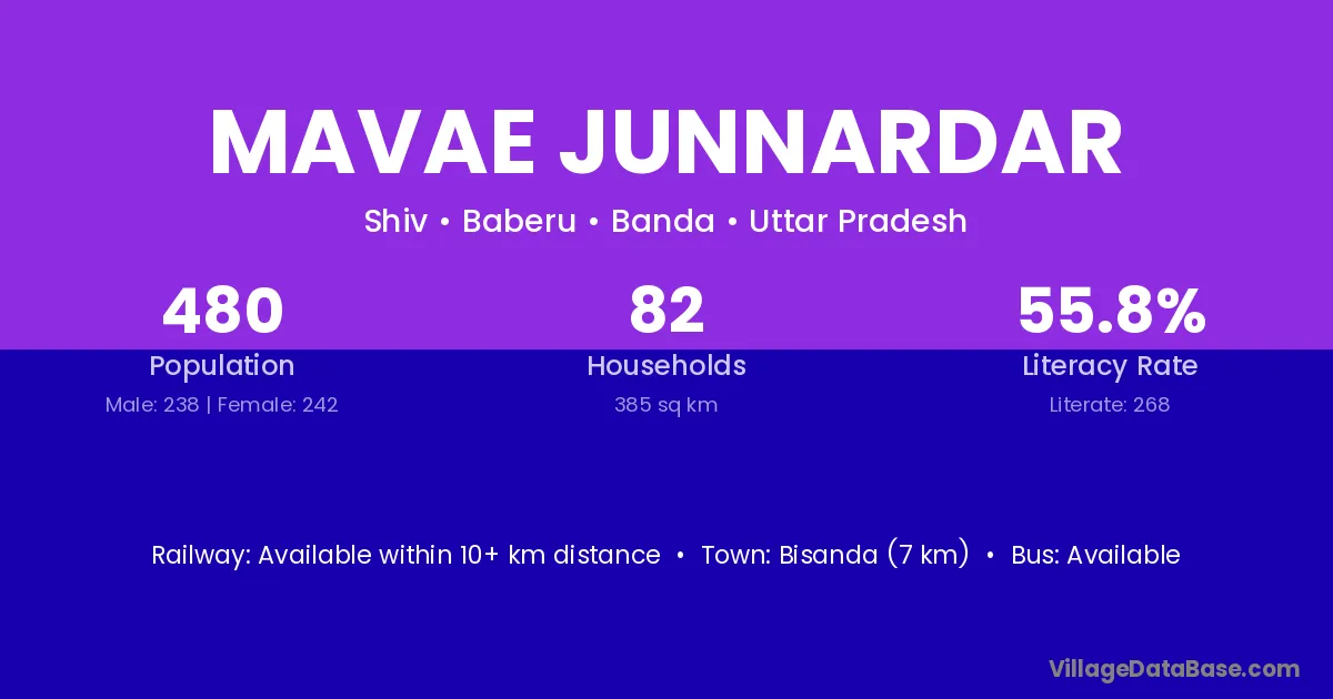 Mavae Junnardar village has a total population of 480 people, of which 238 are males and 242 are females.