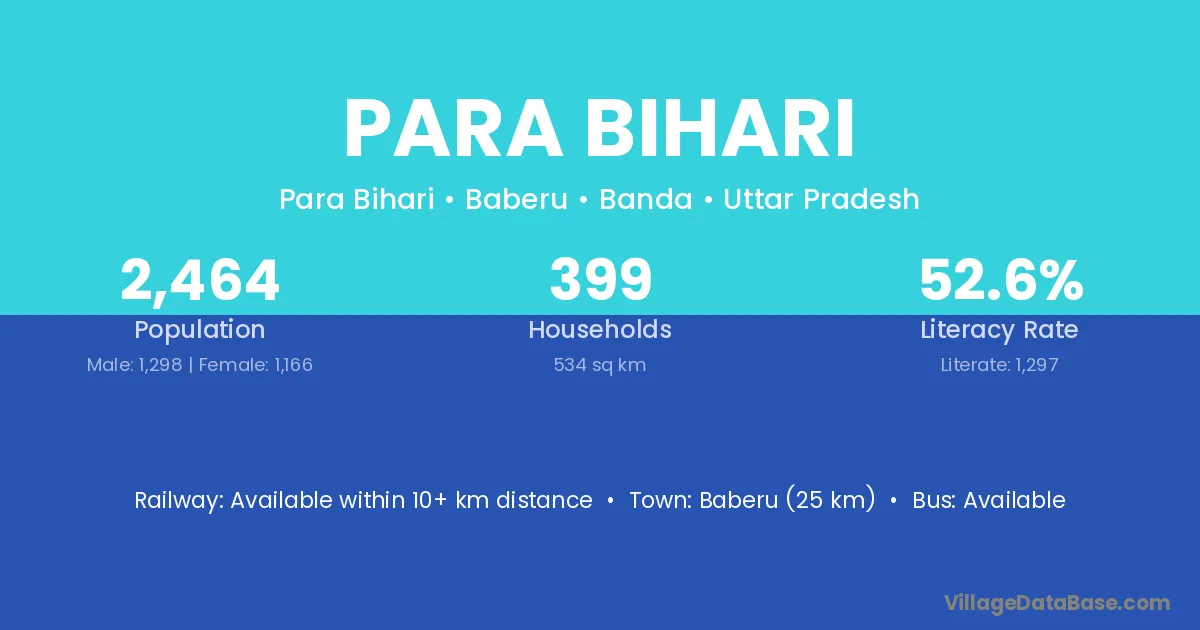 Baberu (25 km) is the nearest town to Para Bihari village for major economic activities and is located approximately 25 km away.