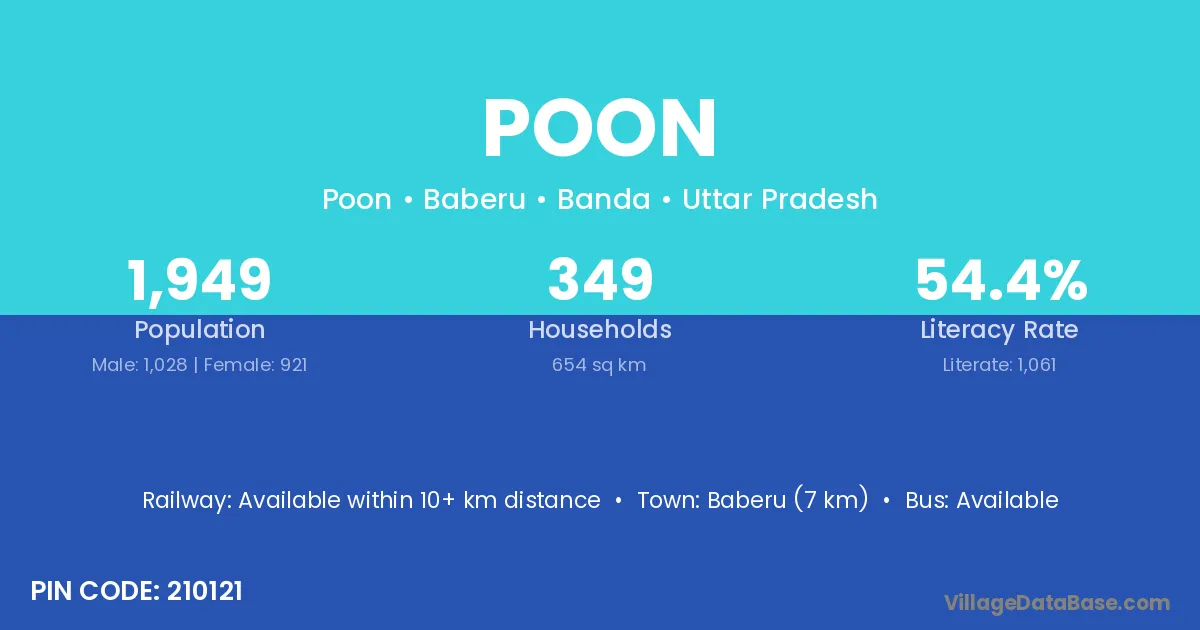 Baberu (7 km) is the nearest town to Poon village for major economic activities and is located approximately 7 km away.