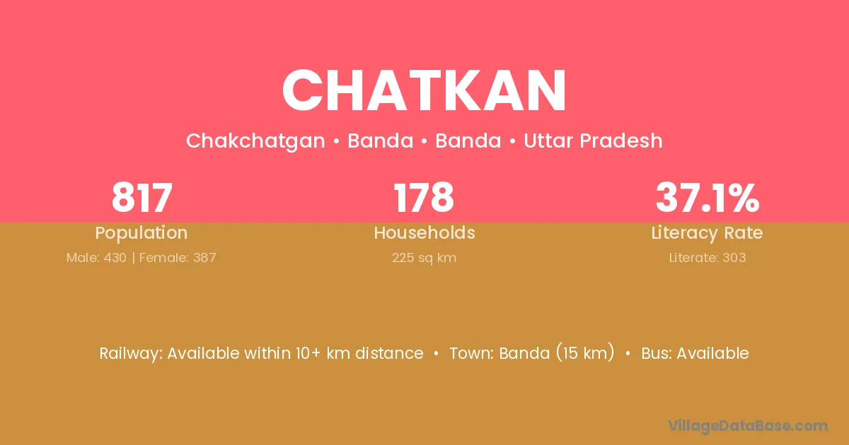 Banda (15 km) is the nearest town to Chatkan village for major economic activities and is located approximately 15 km away.