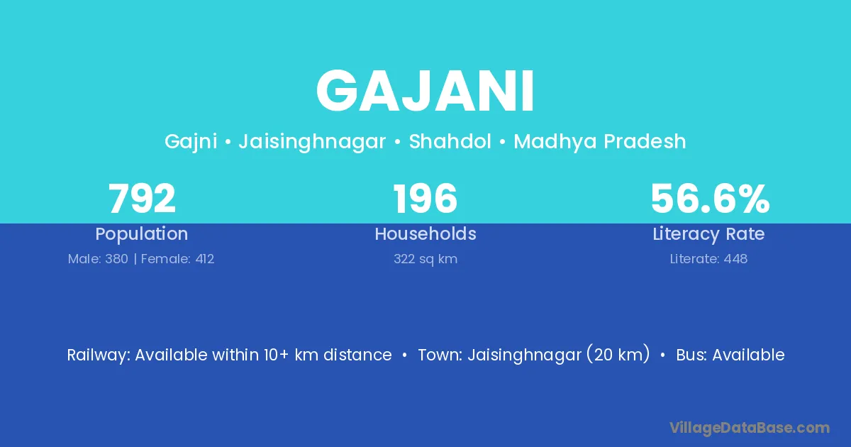 Tindwari (6 km) is the nearest town to Gajani village for major economic activities and is located approximately 6 km away.