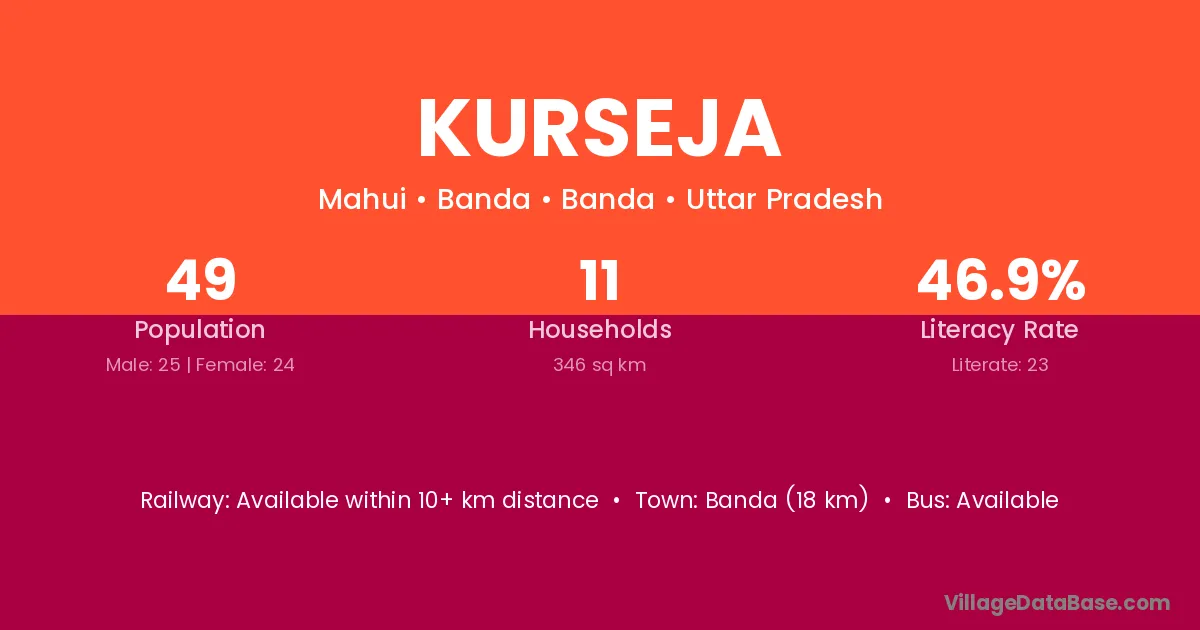 Banda (18 km) is the nearest town to Kurseja village for major economic activities and is located approximately 18 km away.