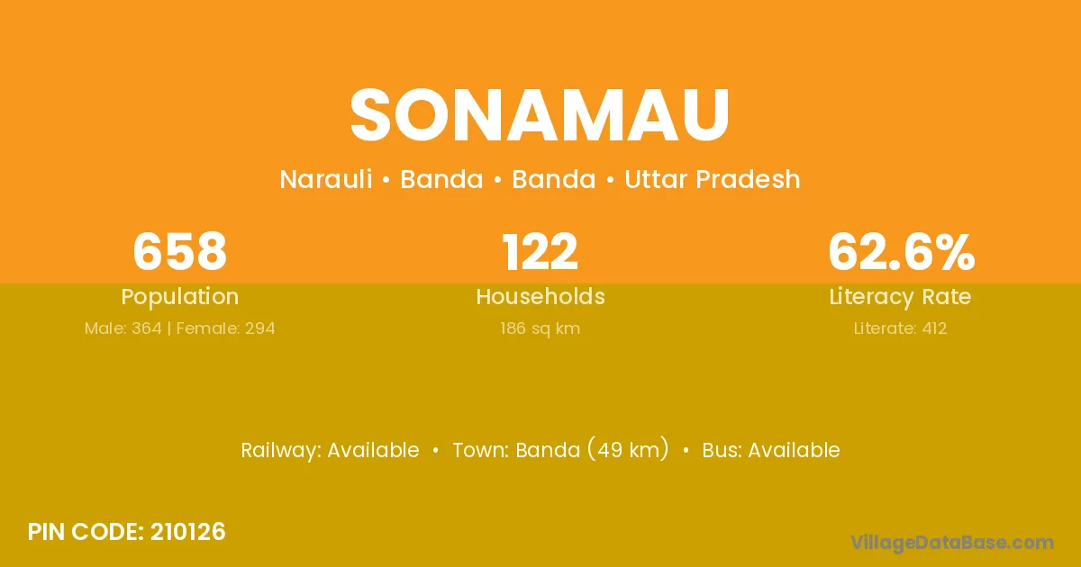 Banda (49 km) is the nearest town to Sonamau village for major economic activities and is located approximately 49 km away.