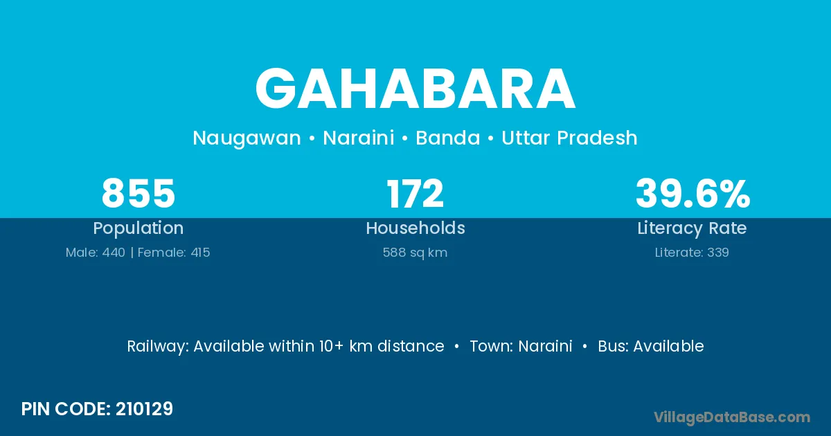 Gahabara village has a total population of 855 people, of which 440 are males and 415 are females.