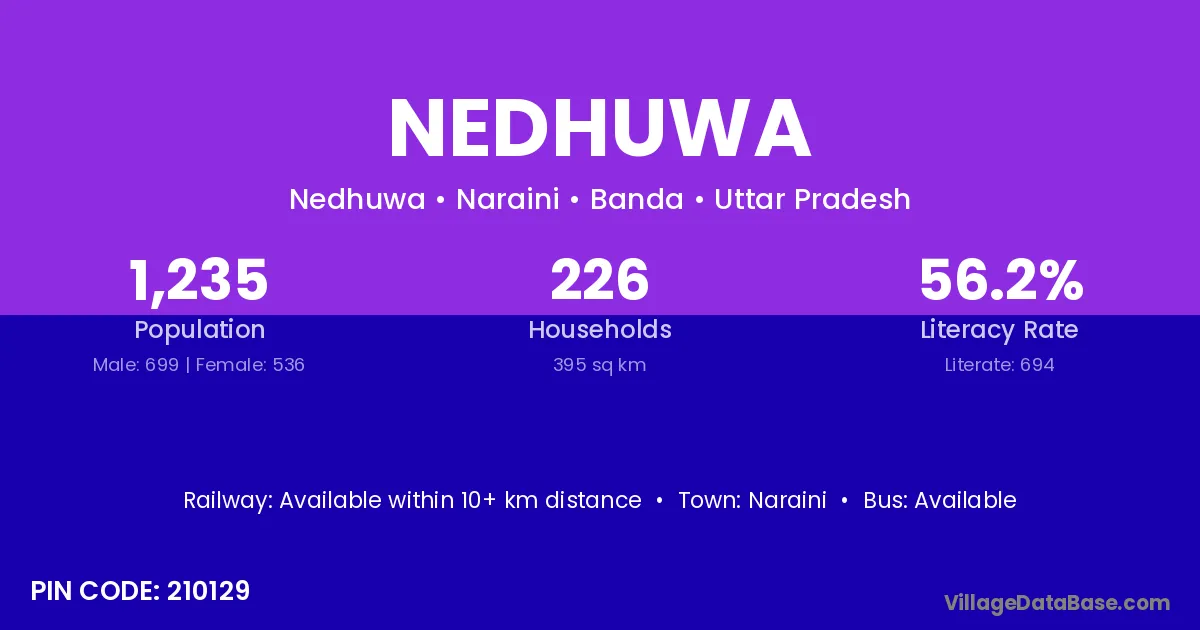 Nedhuwa village has a total population of 1,235 people, of which 699 are males and 536 are females.
