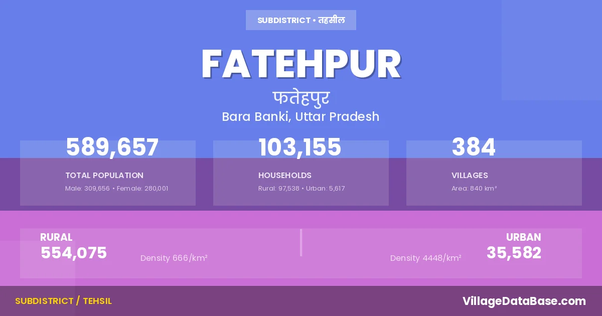Fatehpur is a town and Tehsil in the Bara Banki district of the Uttar Pradesh. In India, a Tehsil is a subdivision of a district responsible for the administration and revenue collection of a specific area within the district. Tehsils play a crucial role in the local governance structure, contributing significantly to the development and administration of their communities.