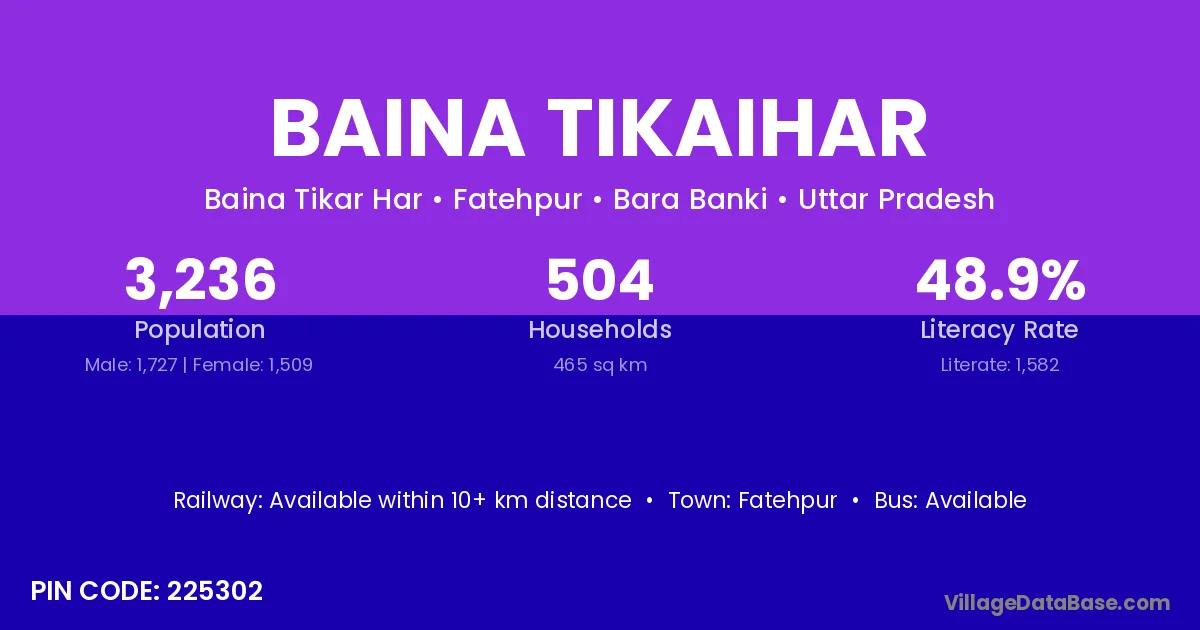 Fatehpur is the nearest town to Baina Tikaihar village for major economic activities