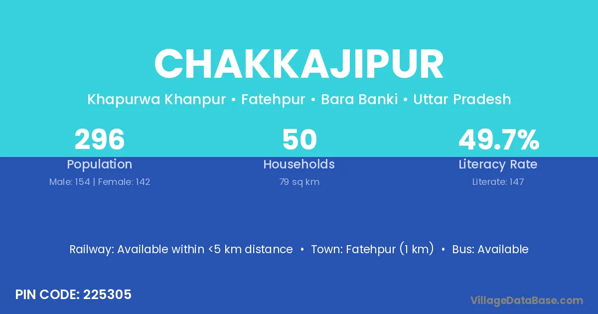 Fatehpur (1 km) is the nearest town to Chakkajipur village for major economic activities and is located approximately 1 km away.