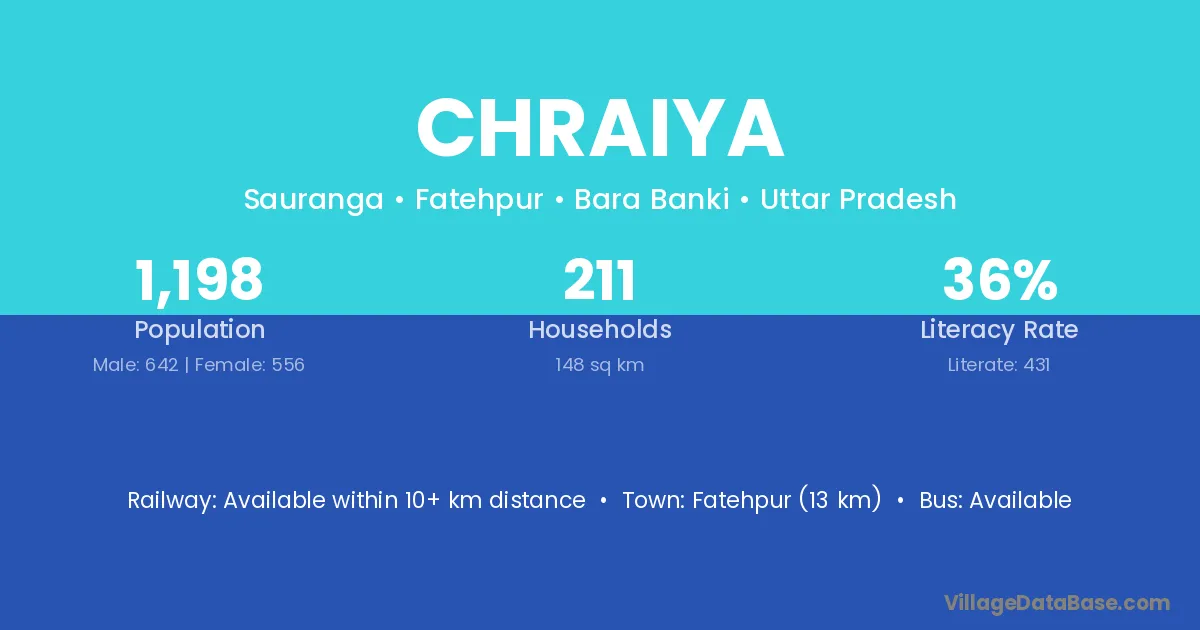 Fatehpur (13 km) is the nearest town to Chraiya village for major economic activities and is located approximately 13 km away.