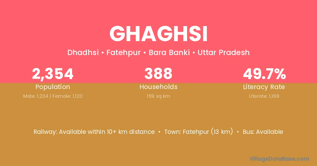 Fatehpur (13 km) is the nearest town to Ghaghsi village for major economic activities and is located approximately 13 km away.