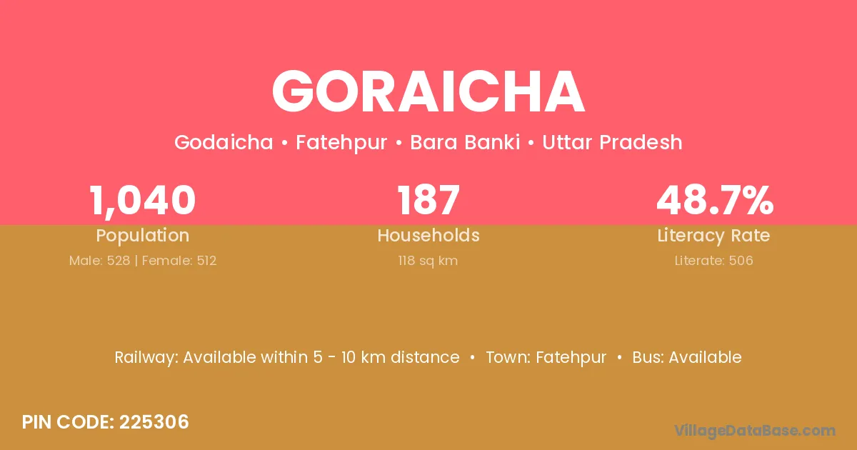 Goraicha village has a total population of 1,040 people, of which 528 are males and 512 are females.