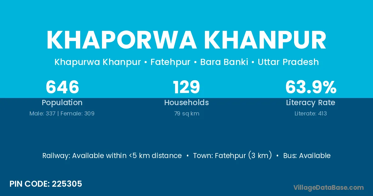 Fatehpur (3 km) is the nearest town to Khaporwa Khanpur village for major economic activities and is located approximately 3 km away.