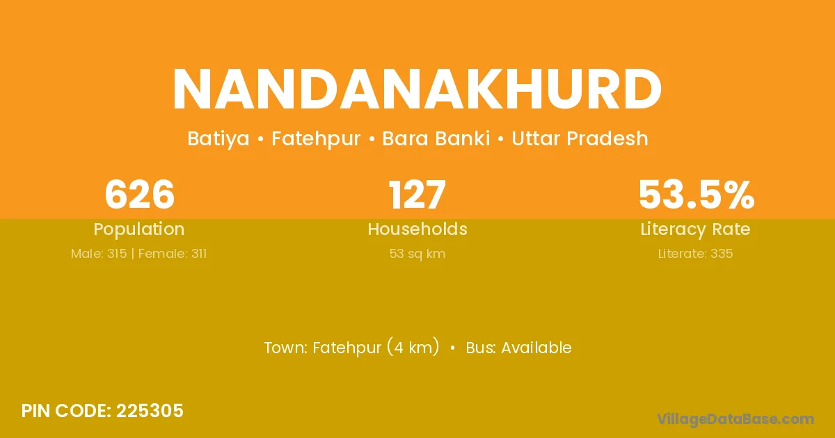 Fatehpur (4 km) is the nearest town to Nandanakhurd village for major economic activities and is located approximately 4 km away.